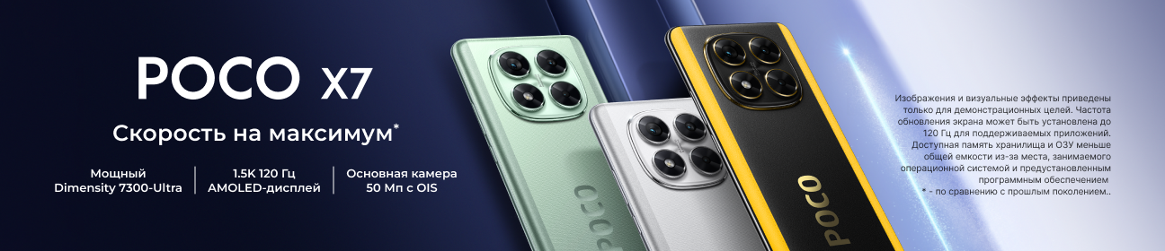 Новинка Poco X7 готова покорить вас своей производительностью и современным дизайном. Оснащенный мощным процессором MediaTek Dimensity 7300-Ultra, смартфон обеспечивает плавную работу даже в самых требовательных задачах. Изогнутый AMOLED-дисплей CrystalRes 1.5K с частотой 120 Гц дарит невероятно четкое и яркое изображение, а защита IP68 делает устройство устойчивым к воде и пыли. Основная камера на 50 Мп с оптической стабилизацией (OIS) позволит вам создавать профессиональные снимки даже в движении. А благодаря емкому аккумулятору на 5110 мАч вы сможете наслаждаться любимыми приложениями, играми и видео без частых подзарядок.